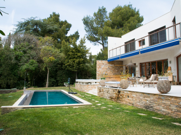 Stylish villa located in a beautiful environment, with 2600 square meters garden though very close to all local amenities and public transport, the main living room extends through south-facing bay windows onto a large terrace and overlooking the garden and pool.
