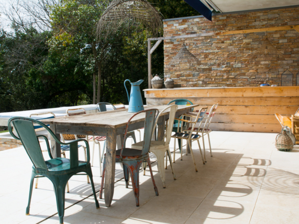 The well-appointed garden and centrally positioned swimming pool provide a relaxing environment for the summer season. The pool has a few shallow steps to one side which are much appreciated by the young ones and is equipped with an alarm system. The dominating terrace provides a wonderful outdoor living space with a seating area, a dining area, a barbecue area and a proper bar.