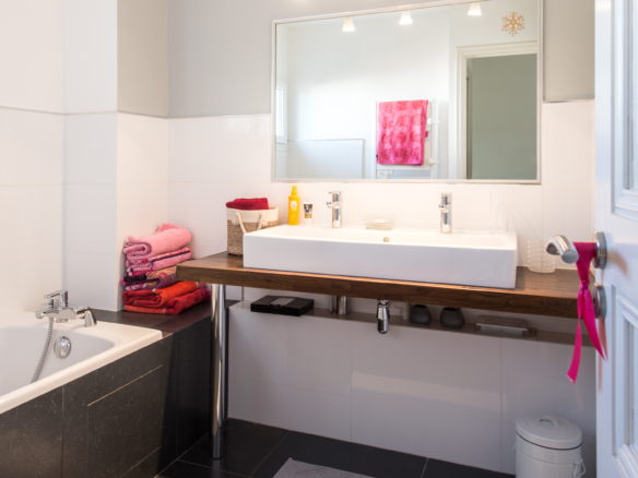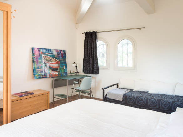 The first floor is divided into two areas, one has a TV room / reading room, and the other has two double bedrooms that share a family bathroom. One of the these rooms has an extra single bed.