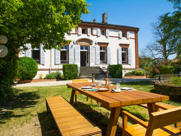 Situated at the entrance of the village of Flourens, just 15 minutes’ drive from Toulouse, the house faces south for maximum sun exposure. It combines the 19th century style à la française with its high ceilings and tall windows with a perfectly comfortable contemporary decor. Three large reception rooms in a row overlook the gardens on both sides to allow you to take in the magnificent landscape around.