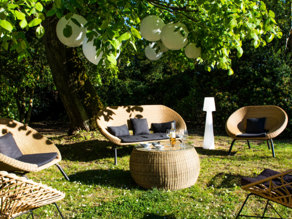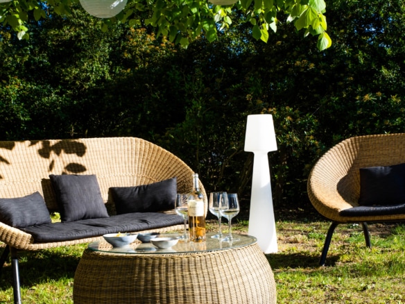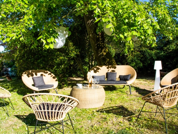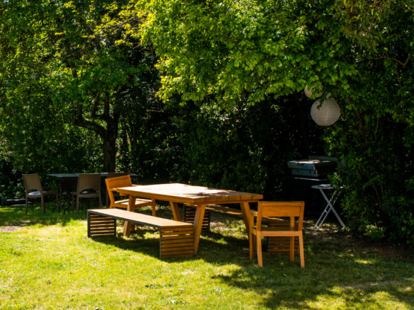 Step into the garden in front of the house to find a long dining table, a barbecue, a plancha and outside lighting for dinners al fresco.