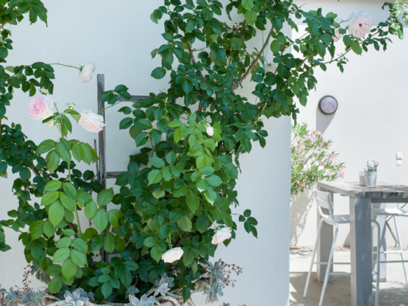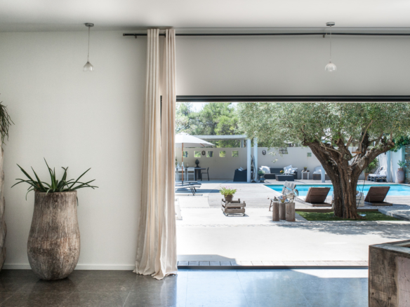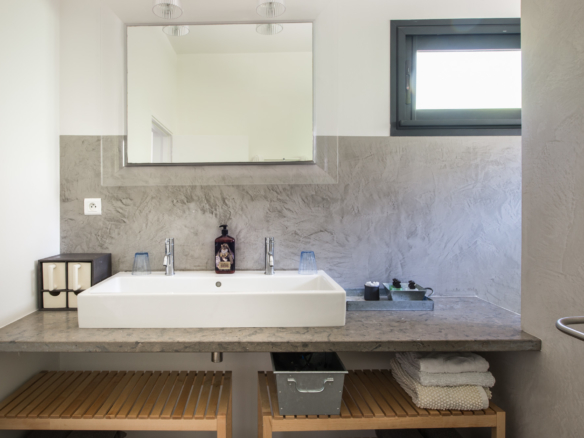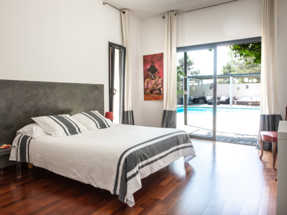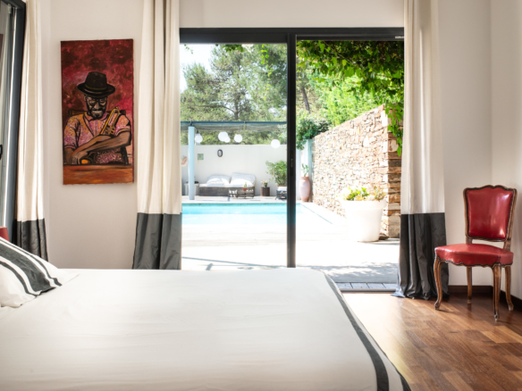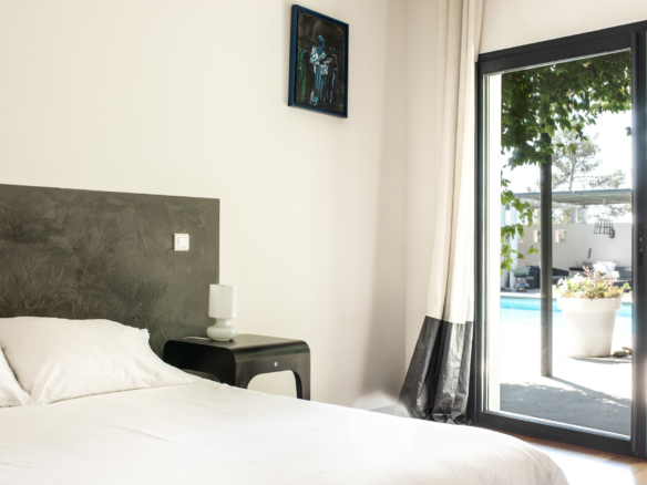 Four finely appointed bedrooms accommodate up to eight guests at this luxury residence. The master bedroom has an en-suite bathroom with unbroken views onto the swimming pool and adjacent garden. Two of the bedrooms offer direct access to the swimming pool and garden area.