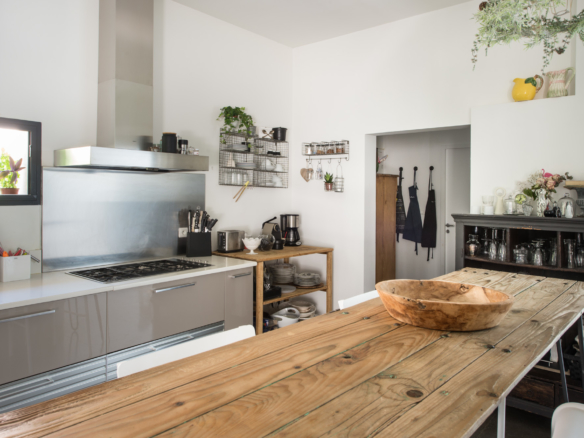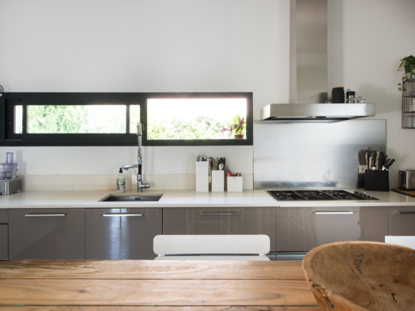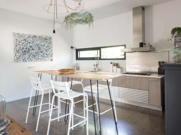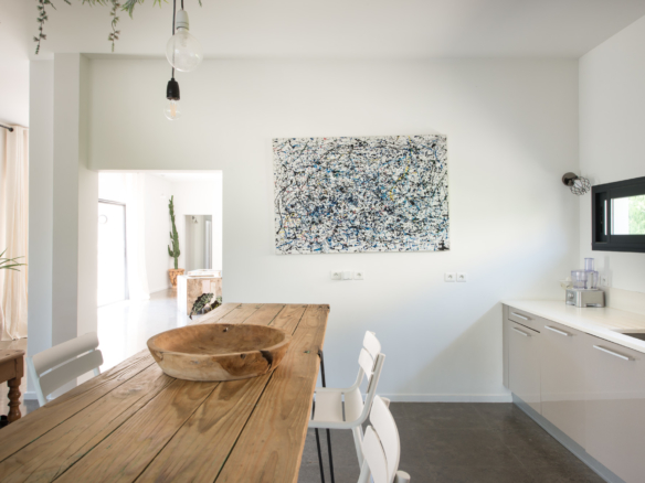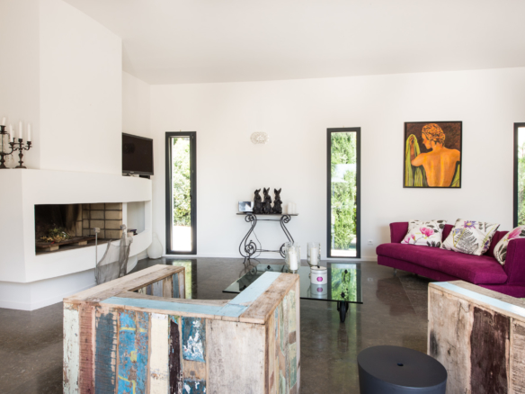 The interiors of the Villa are open, contemporary and bright. The large floor-to-ceiling windows in the living room can be opened widely and capture abundant natural light throughout the day. Stylish furnishings based on rustic-chic style create a slick, yet comfortable setting in which to unwind. The fully equipped kitchen also features a breakfast bar.