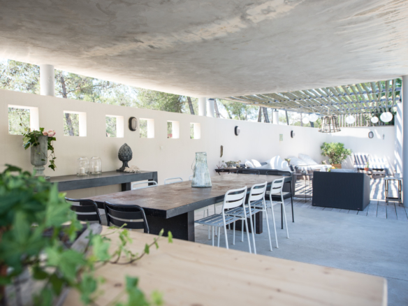 The pristine grounds invite guests to wander and relax in surroundings. Cool off or swim in the square swimming pool, and then relax in the shade on a sun lounger. The surrounding terraces have been designed to extend the indoor areas on the ground floor and feature al-fresco dining, an outdoor lounge with a summer kitchen, parasols and sofas.