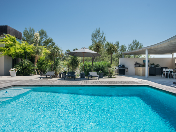 This stunning new property located in the exclusive area of Les Vautes, 10 minutes outside Montpellier. The suprb contemporary architecture offers beautifully appointed accommodation where design and decor create an atmosphere of harmony of sophistication based on a rustic-chic style. You will have access to the first floor of the villa.