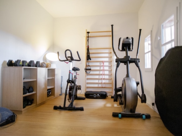 On the other side of the game room, you will find the gym fully equipped with weights, cross trainer, exercise bike, boxing bag, yoga mat, ladder, trampoline, and TV. The gym makes the perfect start for a day relaxing in the sun.