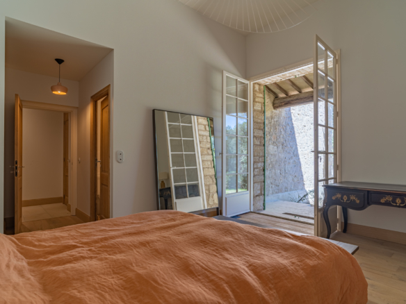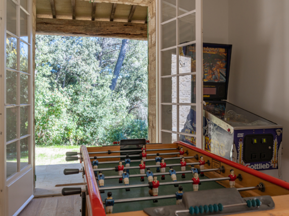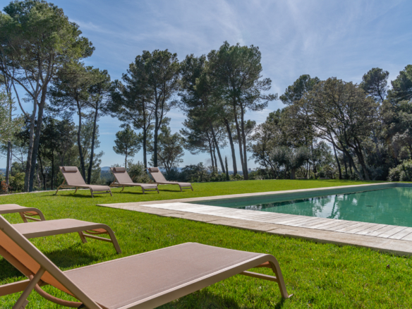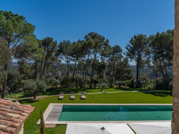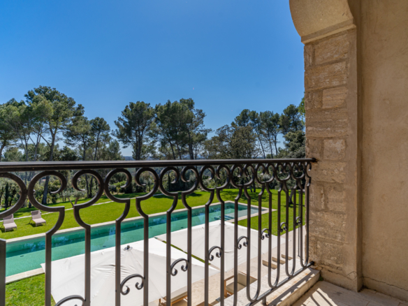 Approaching the villa, you are welcomed by a sprawling, meticulously landscaped garden, a masterpiece of verdant beauty. The garden features a lush grassy lawn, interspersed with ancient olive trees and a variety of Mediterranean flora, creating a tranquil oasis that exudes the essence of Provence. The sight and scent of lavender and rosemary fill the air, immersing you in the region’s rich aromas.