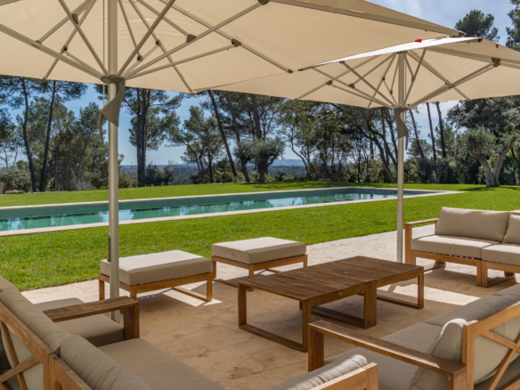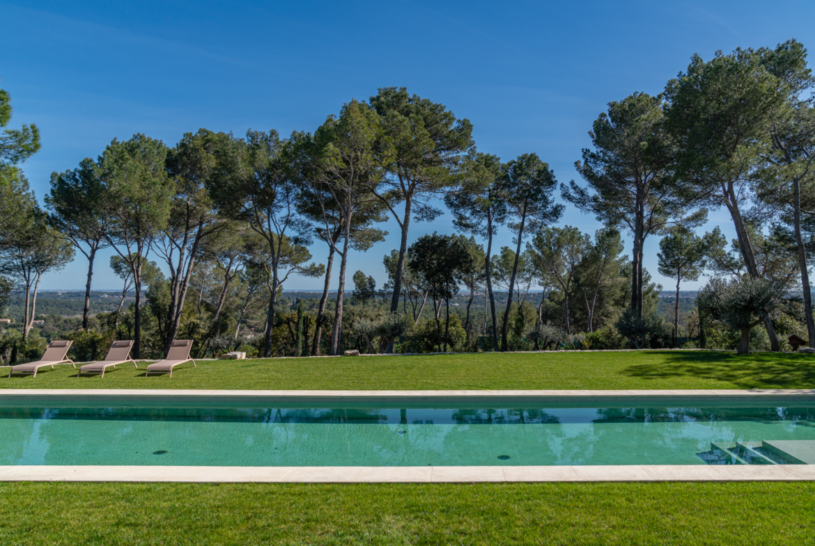Arrivé à la villa, vous êtes accueillis par un vaste et verdoyant jardin Méditerranéen. Le jardin se compose d’une pelouse luxuriante, entrecoupée d’oliviers centenaires et d’une flore méditerranéenne variée, créant ainsi une oasis de tranquillité qui respire l’essence de la Provence et vous immergeant dans les riches arômes de la région.
