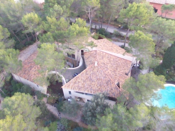 It is surrounded by several deck terraces flanking a beautiful infinity pool of 11 x 6 meters and embellished by a large landscaped Mediteranean garden.