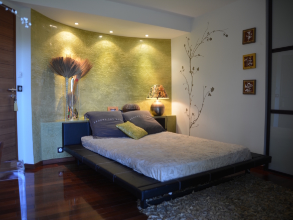 Master bedroom with extra large bed, ensuite bathroom with bath, shower, toilet, dressing room and private terrace