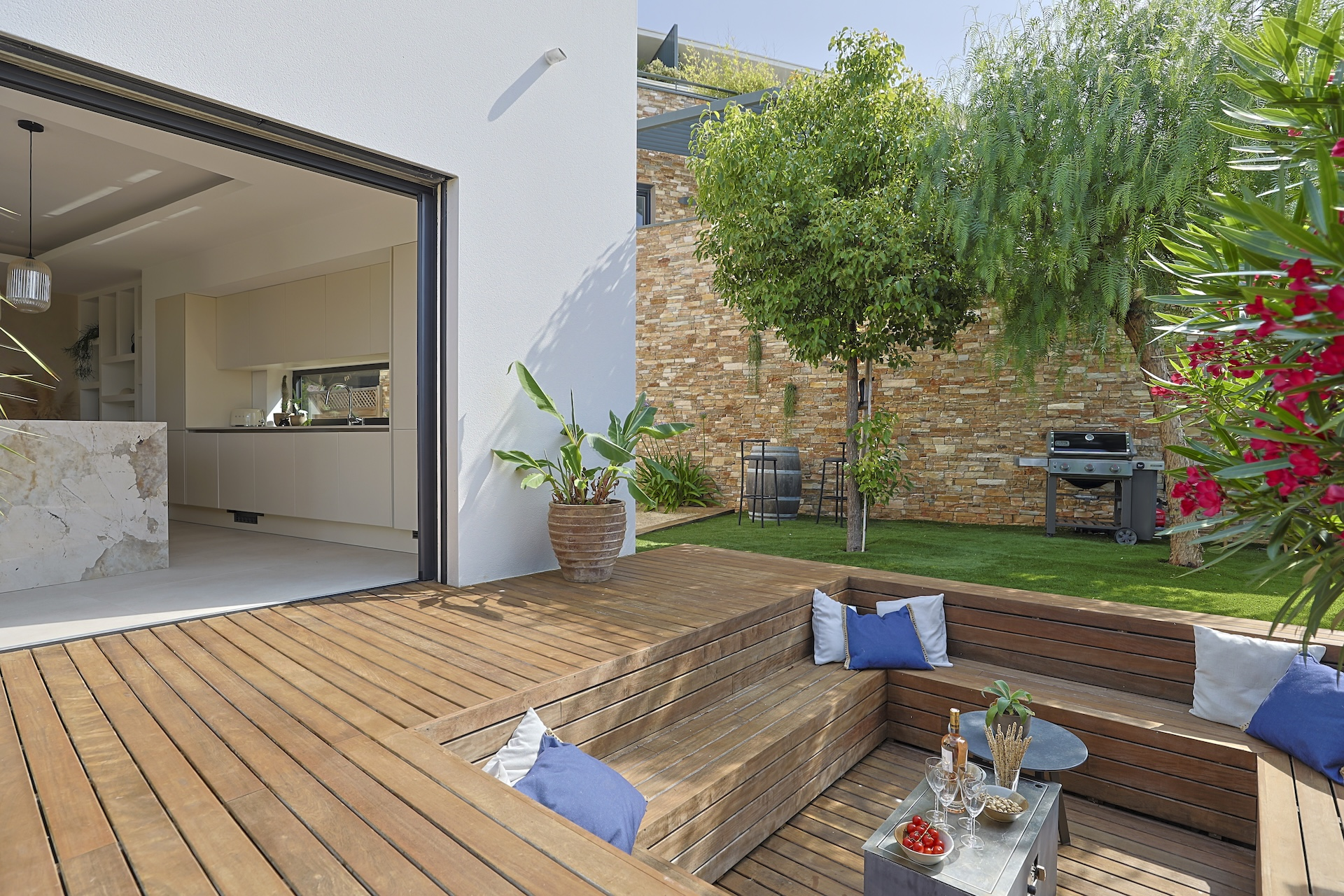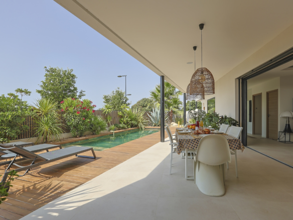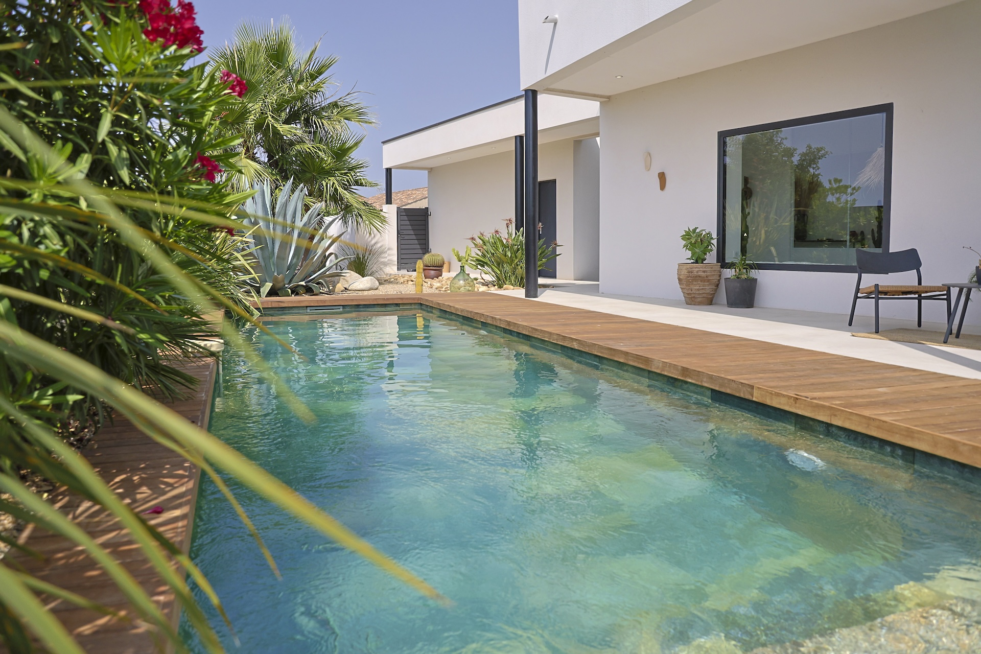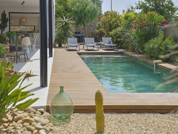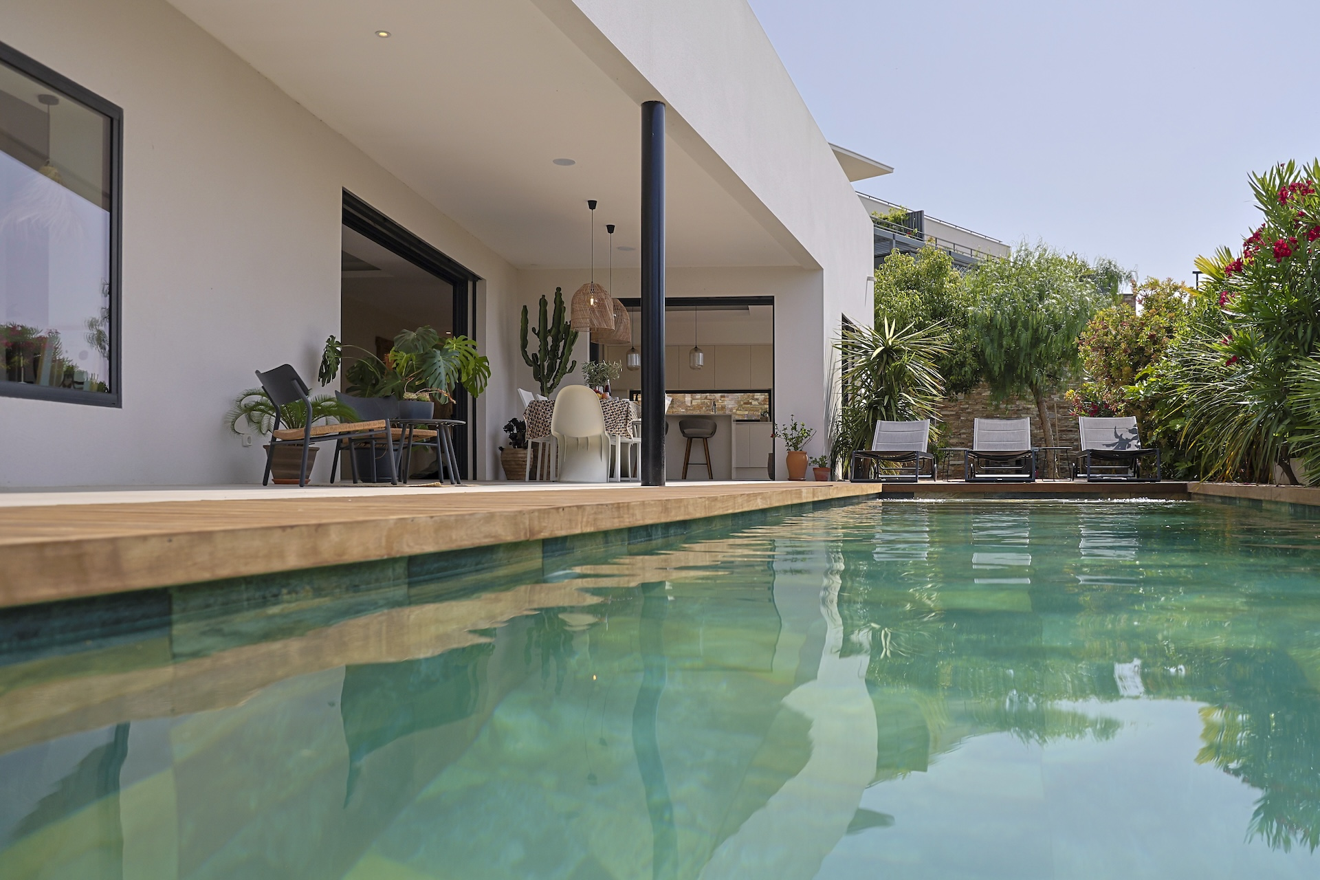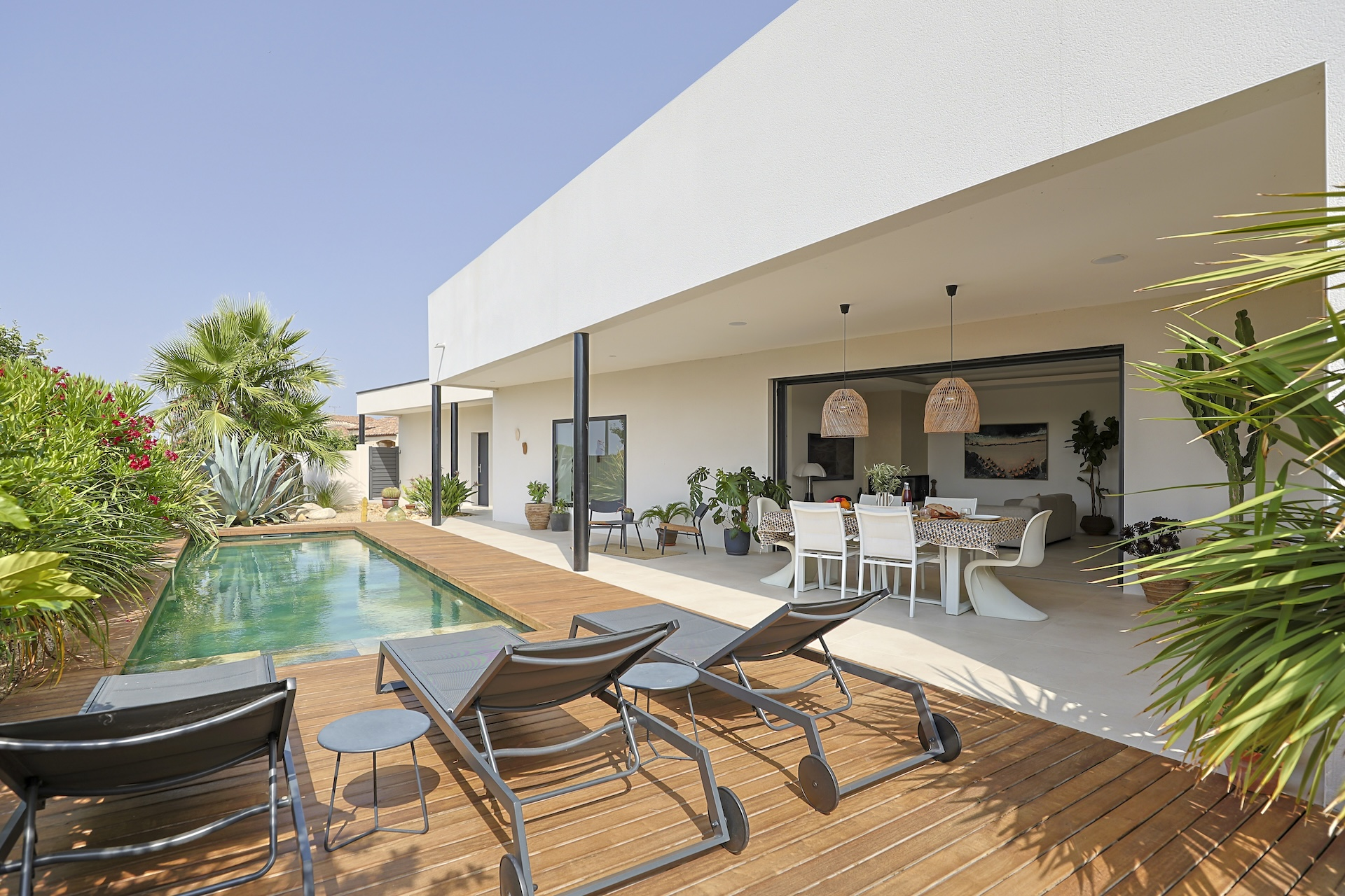 Villa Azura is a contemporary villa located in a quiet residential area of the small village of Pérols, just a few steps away from the beaches. This villa, fully equipped with air-conditionning, has just been built by its owners to the highest standards and decorated with stylised interiors.