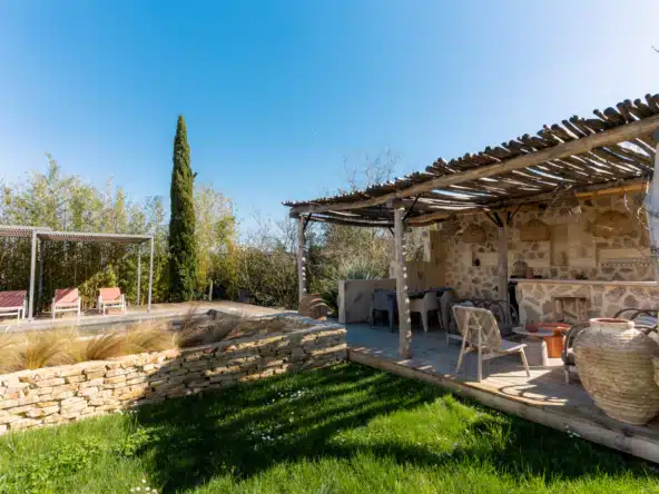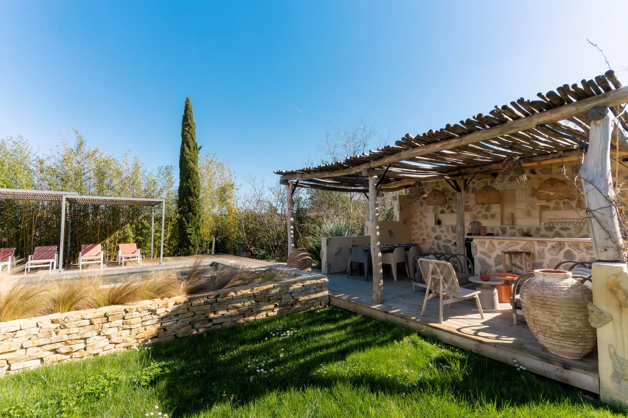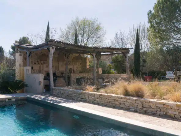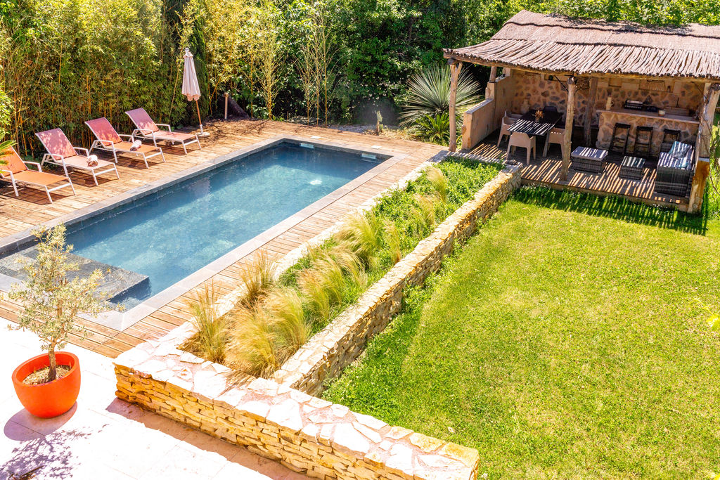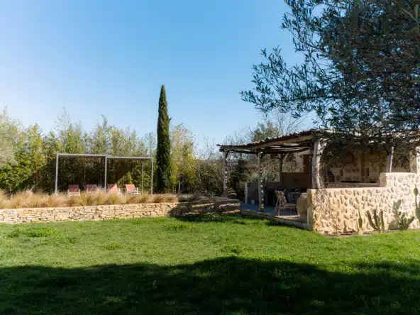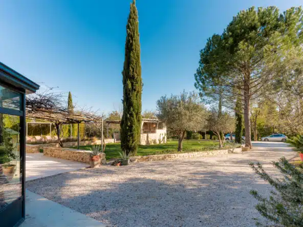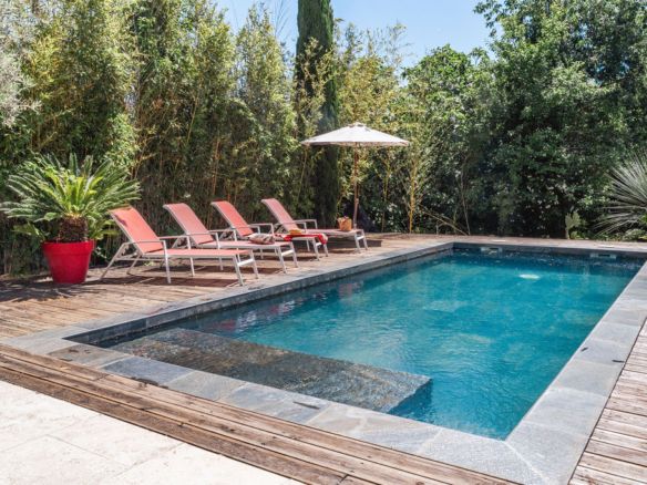 The outdoor spaces are nothing short of breathtaking. A sparkling swimming pool (10×4 meters), complete with a fully equipped pool house, invites you to relax under the Mediterranean sun. The 1500 m² garden, set within the larger wooded park, provides a peaceful haven for lounging or enjoying al fresco meals with loved ones.