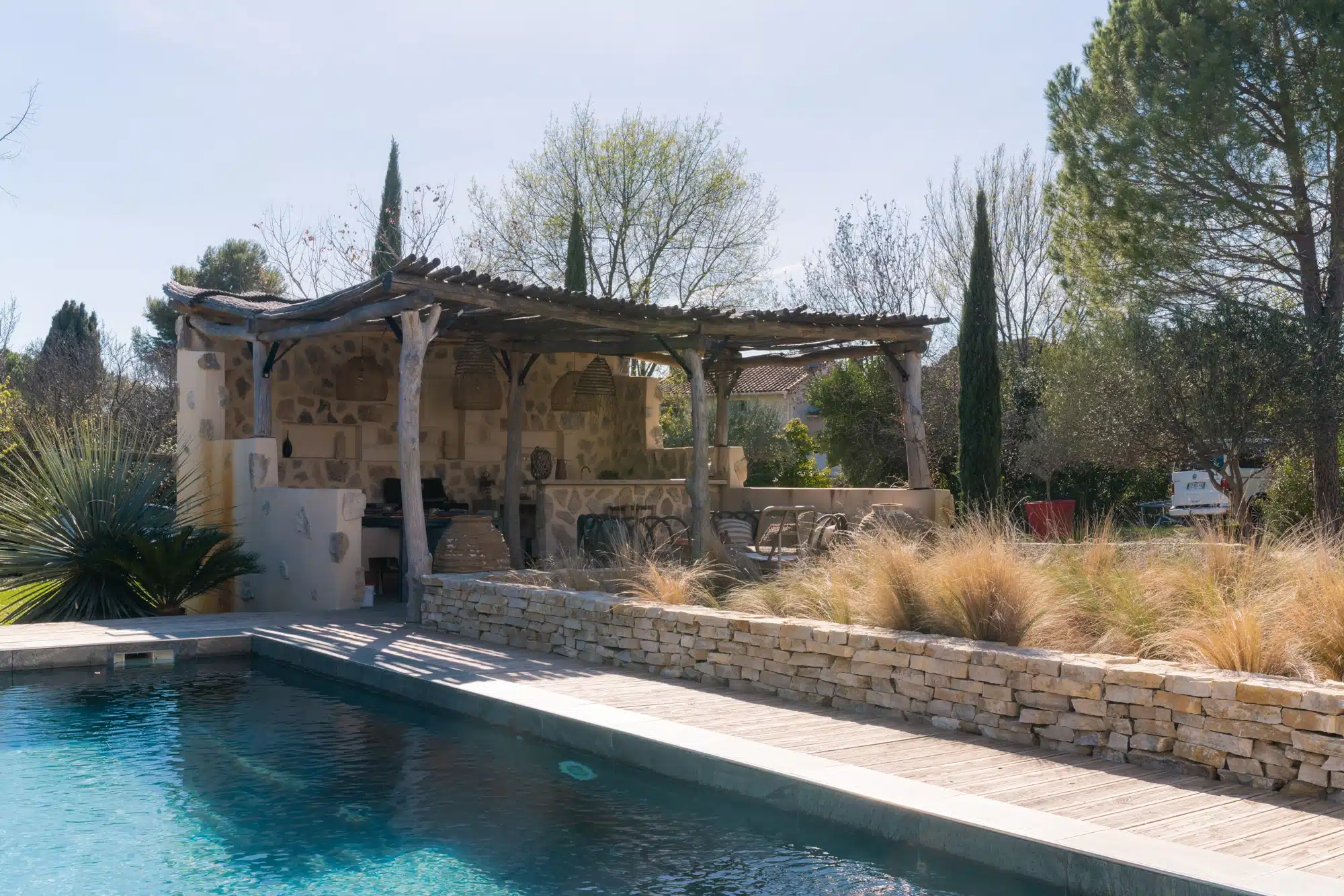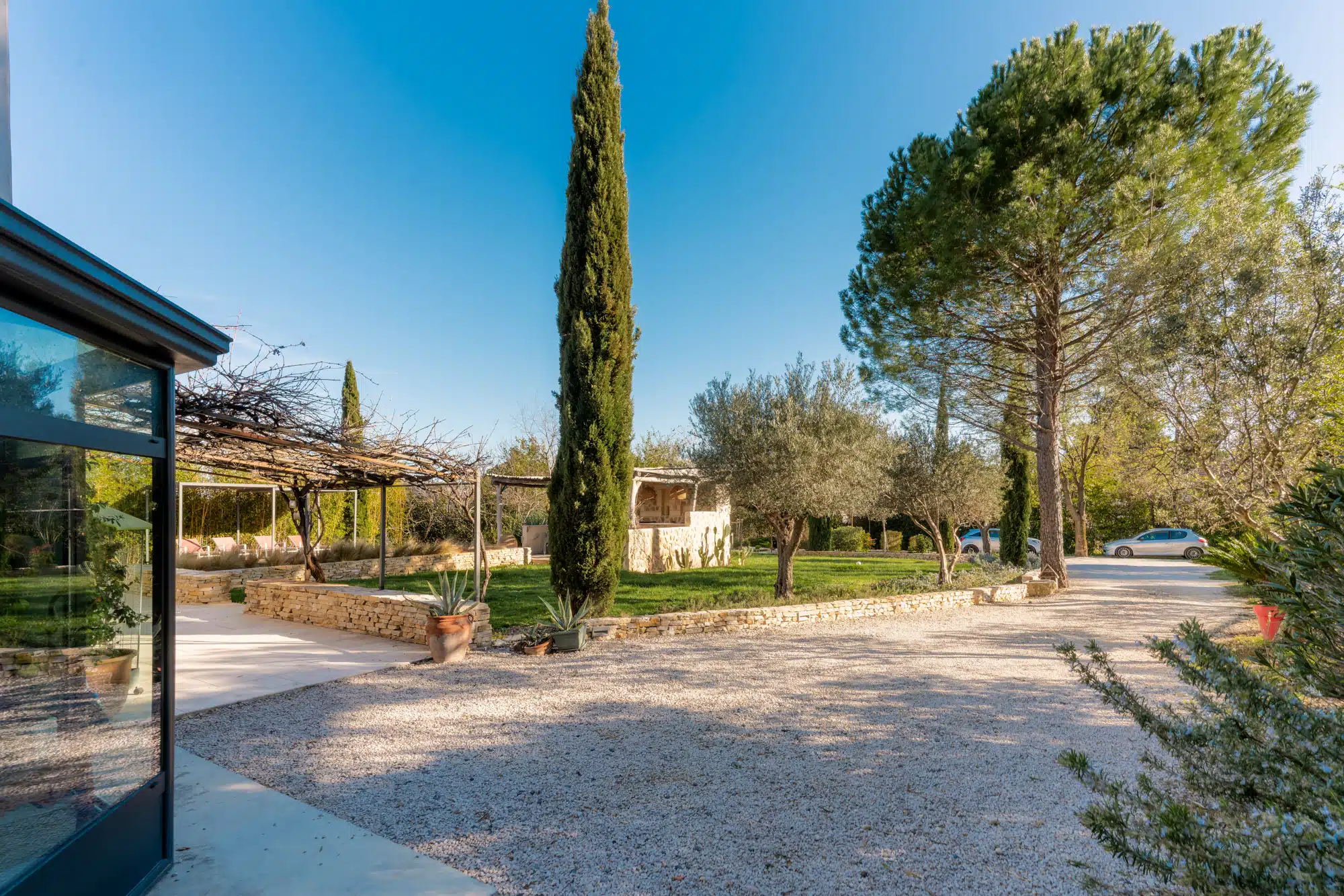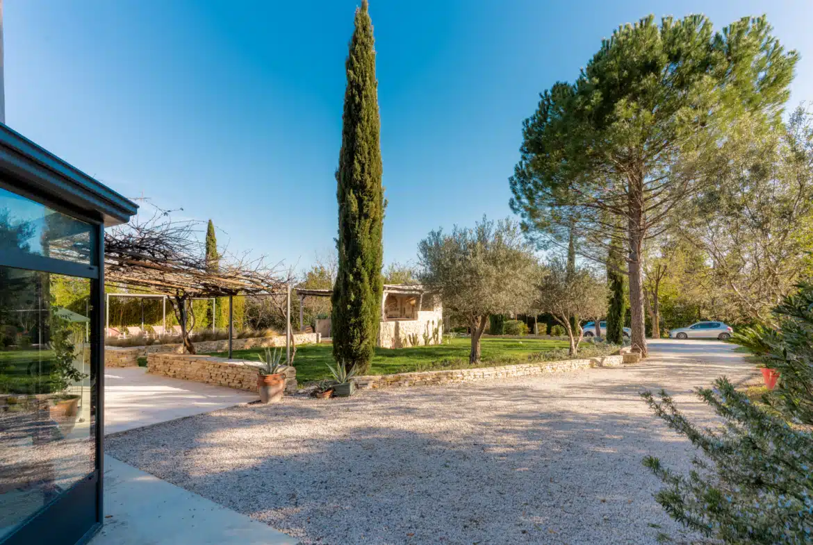 The outdoor spaces are nothing short of breathtaking. A sparkling swimming pool (10×4 meters), complete with a fully equipped pool house, invites you to relax under the Mediterranean sun. The 1500 m² garden, set within the larger wooded park, provides a peaceful haven for lounging or enjoying al fresco meals with loved ones.