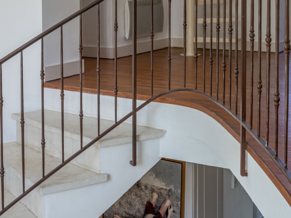 Stairs leading to Mezzanine with single bed and access to :