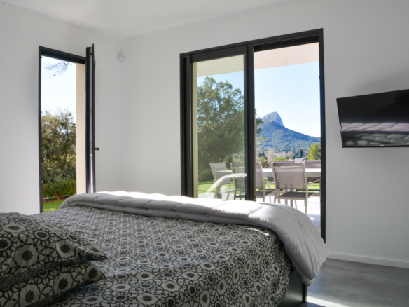 Beautiful contemporary villa with exceptional views over Pic Saint Loup mountain. This house is located within walking distance of the village of Saint Mathieu de Tréviers, in a privileged posititon with spectacular views and a very quiet environment surrounded by nature.