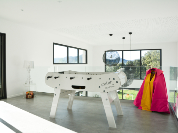Modern kitchen • Dolce gusto coffee, tea and chocolate machine • kettle • Fridge freezer • Dishwasher • Washing Machine • Dryer • WiFi • Floor cooling/heating system • Smoke detector • TV • Ironing board • Towel radiators • Hairdryers • Plancha • Babyfoot (foosball) • Ventilators • Shutters on all windows • Alarm system • TV with Canal + Sport