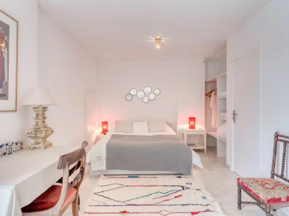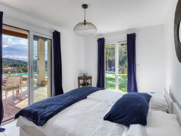 Bedroom 4: Queen or Two twin beds (90×200 cm), en-suite shower, air conditioning, garden access.