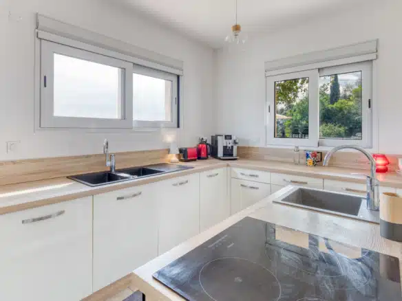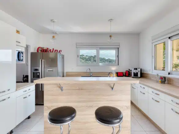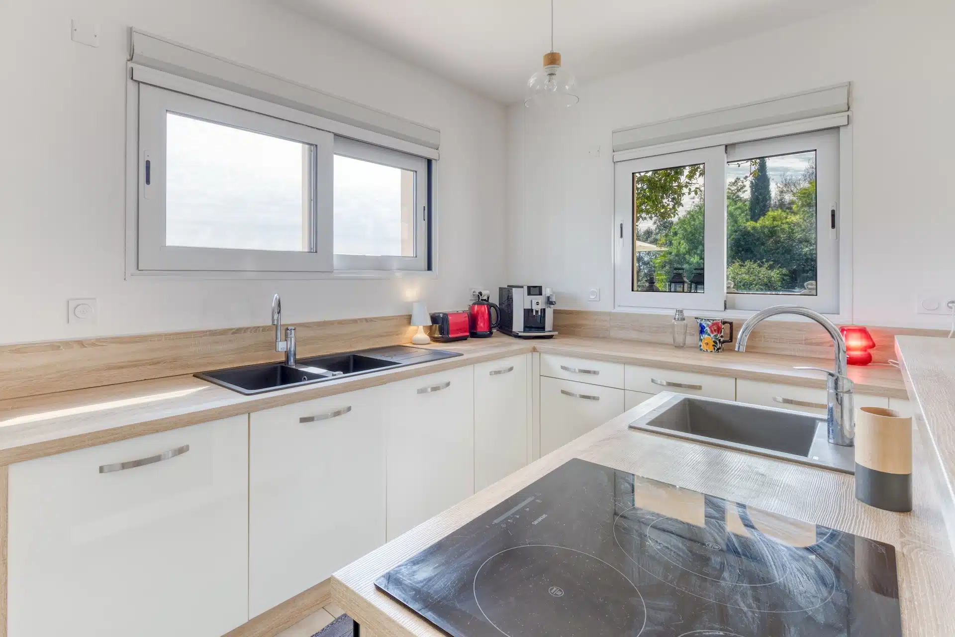 Air conditioning • TV • Modern kitchen • Nespresso coffee machine • Filter coffee machine • Kettle • Microwave • Standard Oven • Fridge freezer • Dishwasher • Washing Machine • Dryer • Fibre WiFi • Smoke detector • Barbecue • Outdoor Shower • Secure private access • 1 Exterior camera by the entrance door