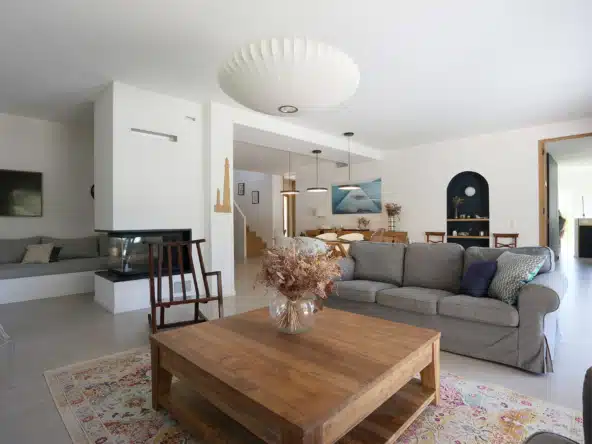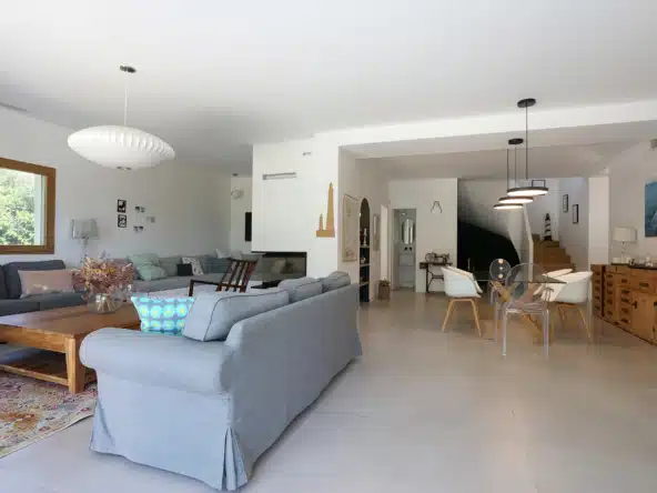 Spanning an impressive 280m² over three floors, Villa Ibiza offers luxurious accommodation with six bedrooms and six bathrooms. The spacious and elegantly decorated living room opens onto a terrace that overlooks the meticulously maintained garden and the inviting saltwater swimming pool. The garden is a tranquil oasis, covering 2000m² and providing ample space for fun and relaxation.