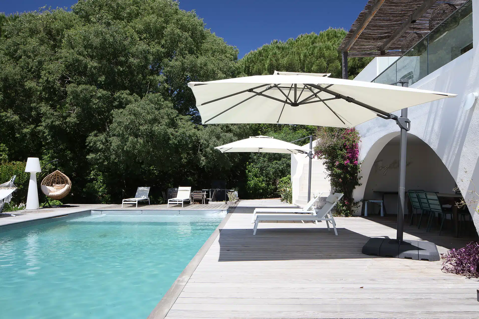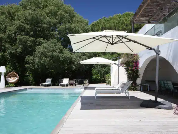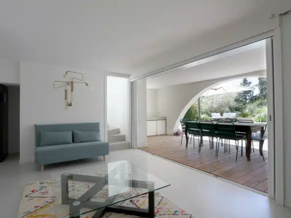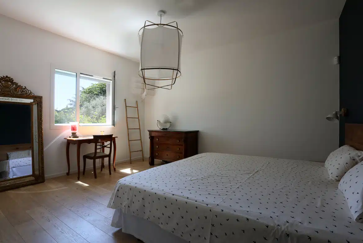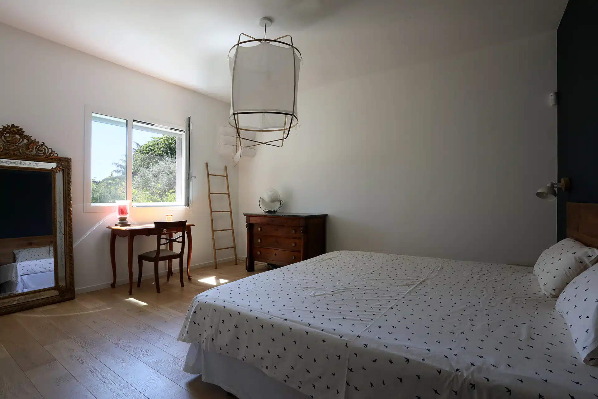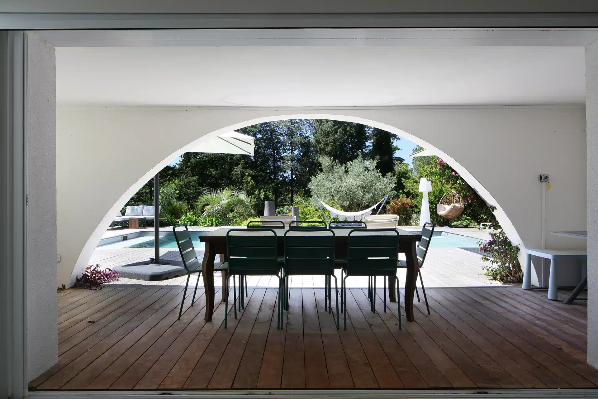 The expansive garden is a haven for those seeking peace and relaxation. Under the shade of a majestic oak tree, a barbecue corner with a dining table provides the perfect spot for memorable alfresco dinners. For entertainment, Villa Ibiza features a brand-new pétanque court, a basketball net, and a ping-pong table, ensuring fun for all ages.