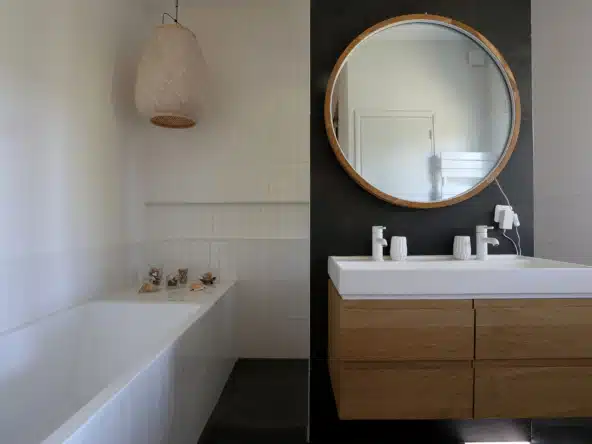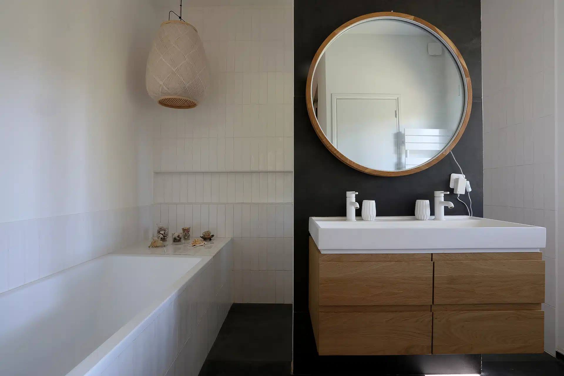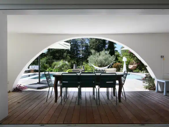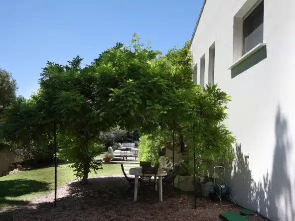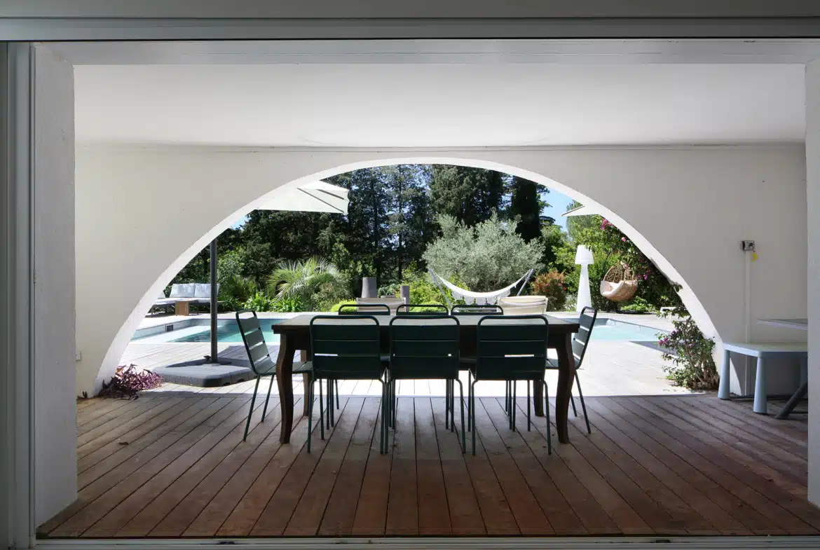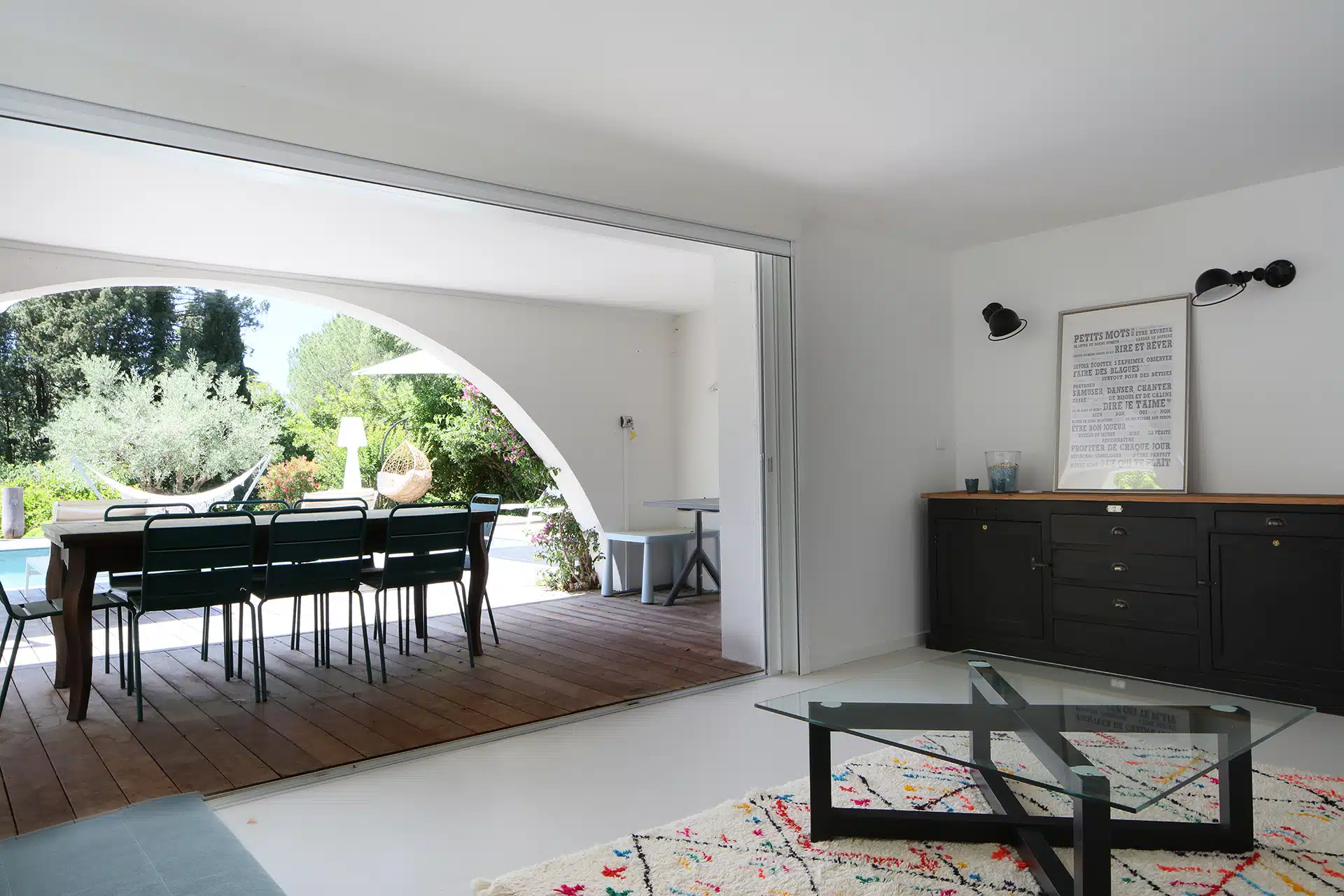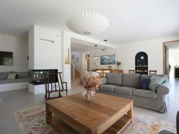 The expansive garden is a haven for those seeking peace and relaxation. Under the shade of a majestic oak tree, a barbecue corner with a dining table provides the perfect spot for memorable alfresco dinners. For entertainment, Villa Ibiza features a brand-new pétanque court, a basketball net, and a ping-pong table, ensuring fun for all ages.