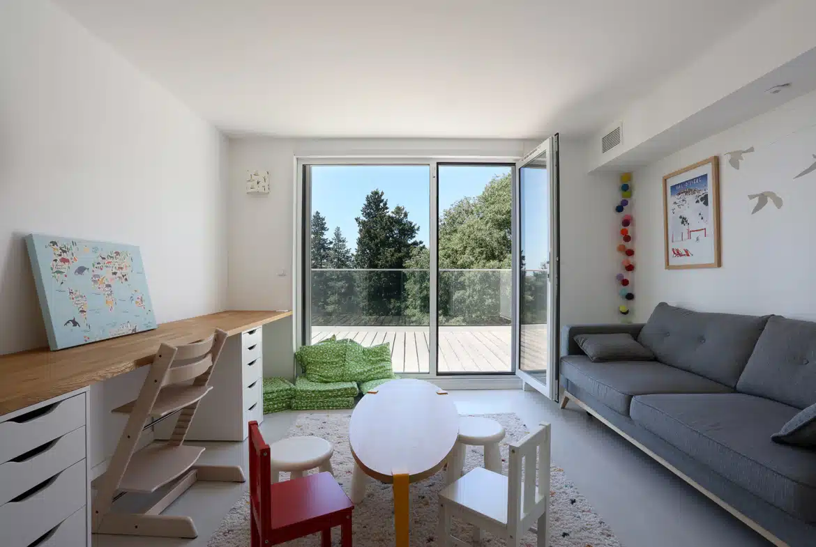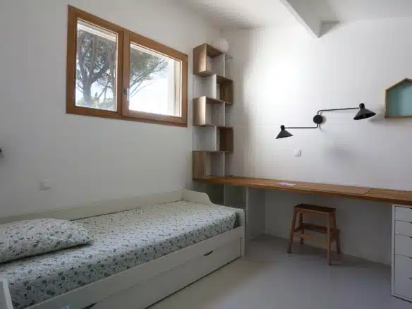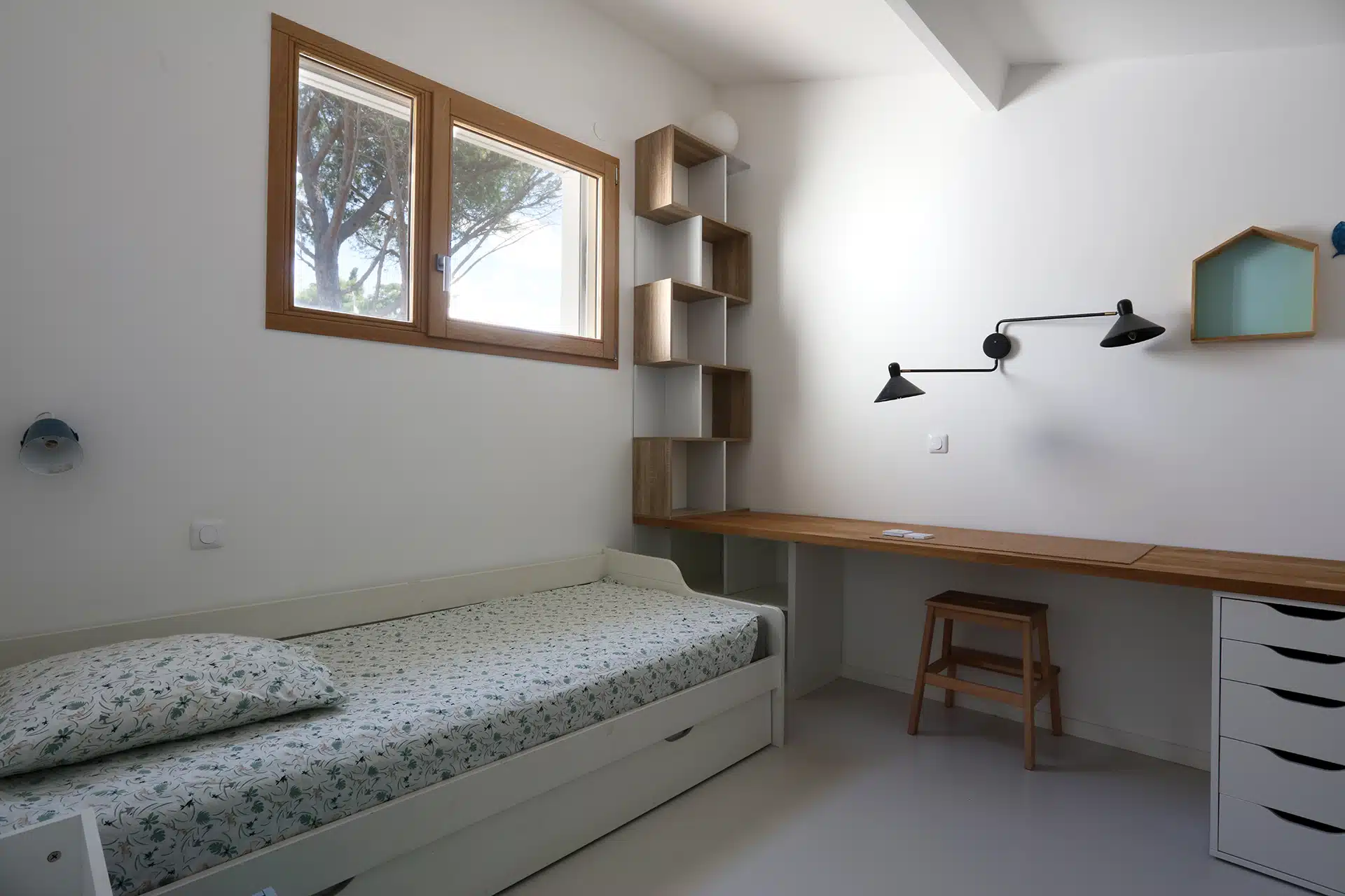 The first floor has three single bedrooms, some of which have an extra single bed; each of these bedrooms has a private shower room. A central playroom and seating area connect these bedrooms and lead to a charming terrace, perfect for enjoying the serene surroundings.