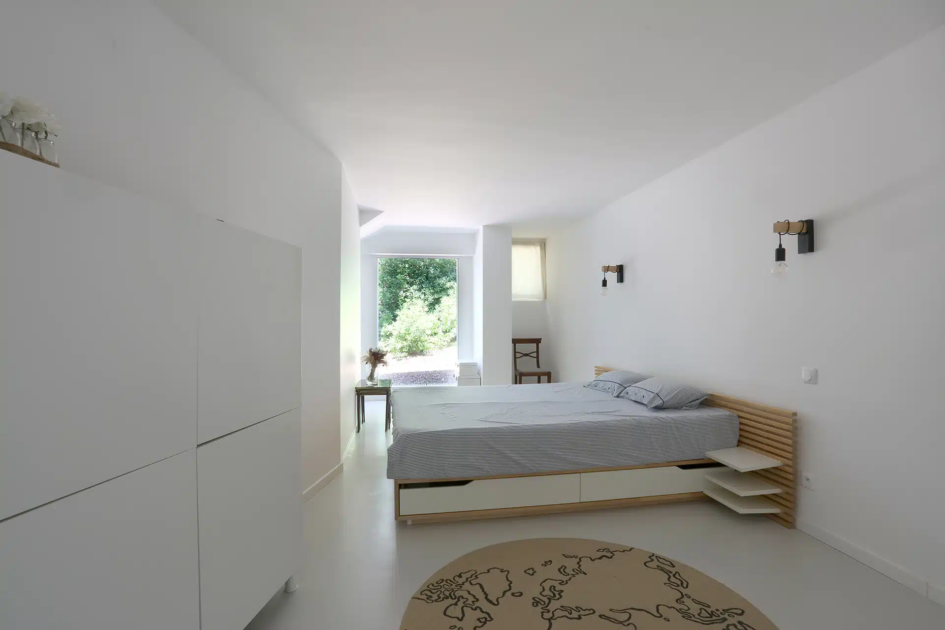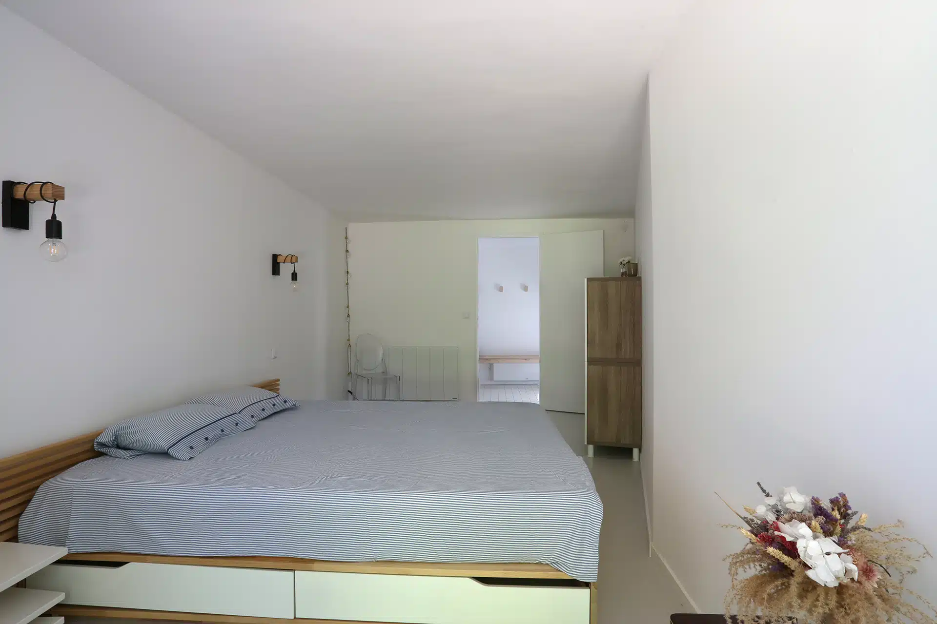 This floor is also home to the master bedroom, featuring an extra-large bed (200x200cm bed) and an ensuite bathroom with both a bath and a shower. A smaller double bedroom (140x200cm bed) with a separate bathroom is also located on this floor.