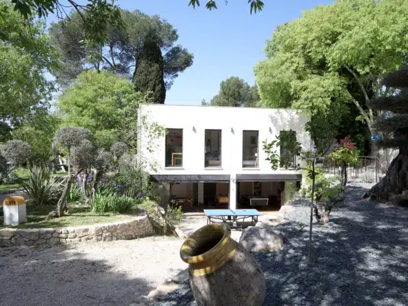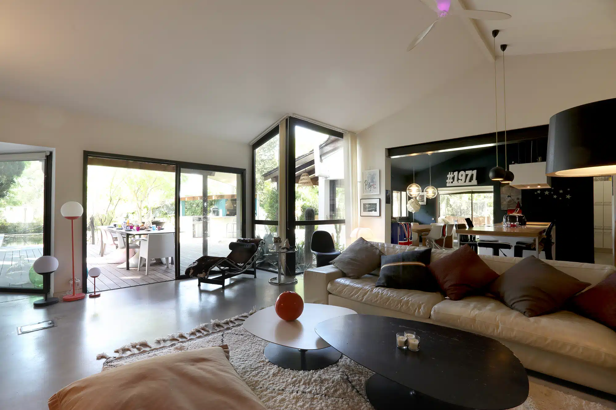 Dès votre arrivée, vous êtes transporté dans un univers où l’on se sent bien accueilli en toute simplicité. Avec ses 300 mètres carrés de plain-pied, cette villa séduit par son design contemporain et ses touches méditerranéennes.