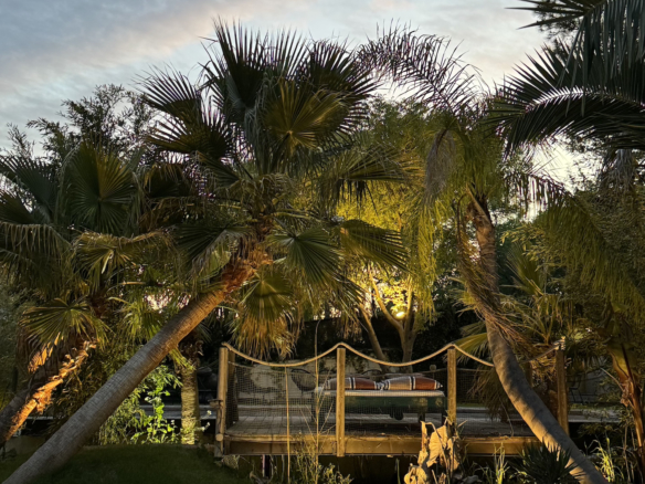 Un éclairage nocturne magique transforme le jardin en un véritable paradis sous les étoiles, invitant à prolonger les douces soirées estivales.
