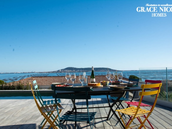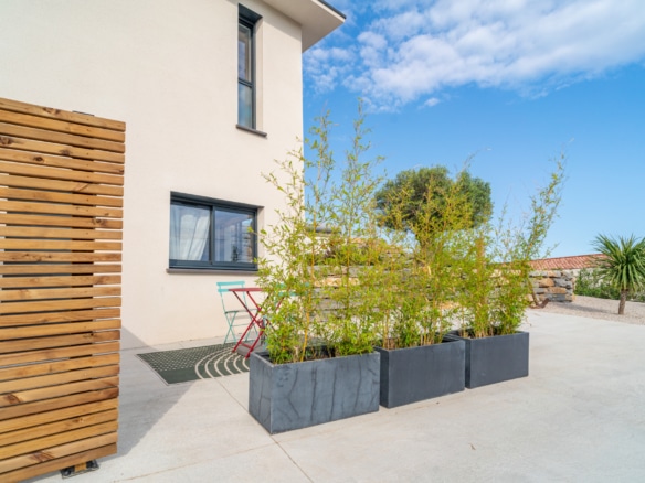 Villa Les terrasses de Thau has a spacious and beautiful garden overlooking the Thau lagoon. The swimming pool is surrounded by wood-decked terrace, which offers breathtaking panoramic views of the lagoon, its bay and the enchanting town of Sète. You can enjoy al fresco dinners in the outdoor dining area with freshly caught seafood bought from the local nearby markets grilled on the modern plancha, also on the terrace. A fun playhouse in the garden is available for the kids.