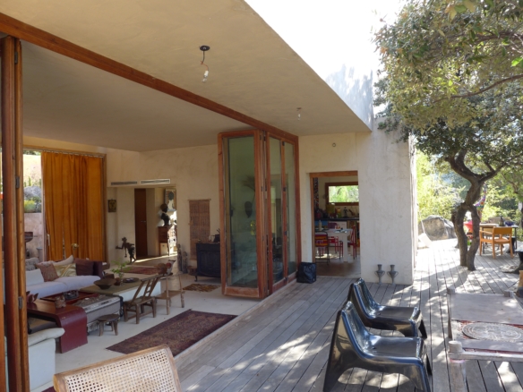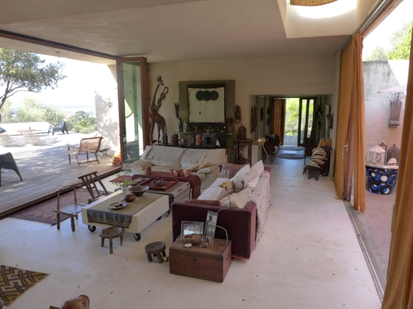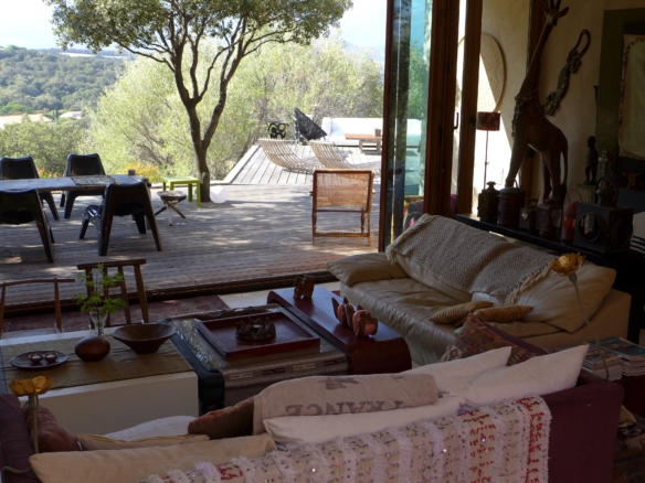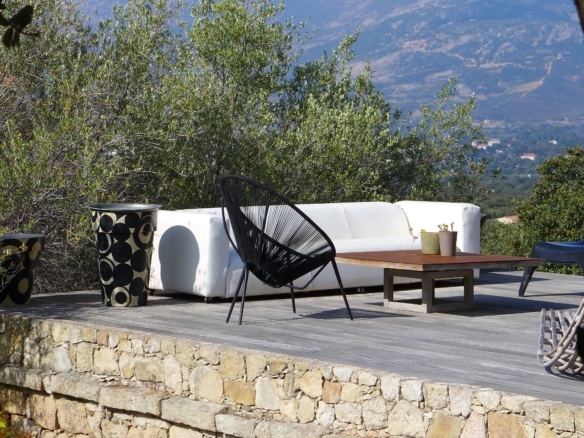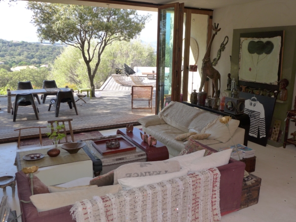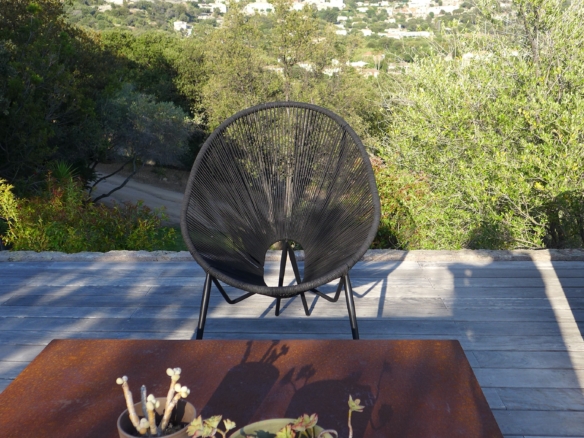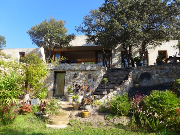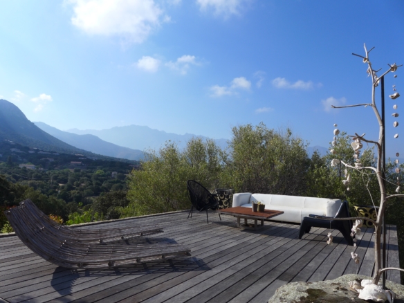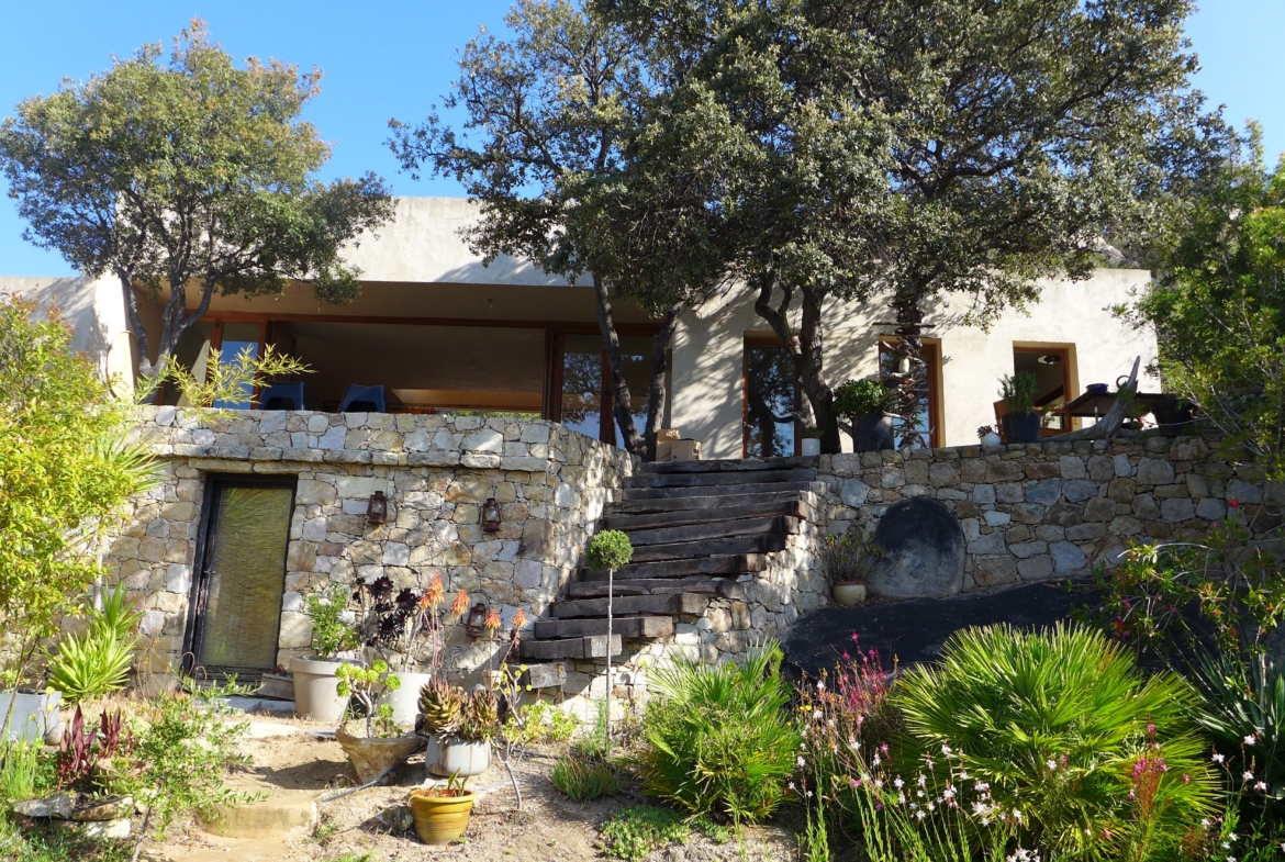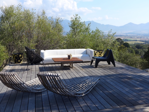 Covered by beautifully imposing rock formations and offering distant views of the countryside and the bay of Corsica to the south, this architectural house immerses itself perfectly in the natural landscape and manages to be both chic and rustic.