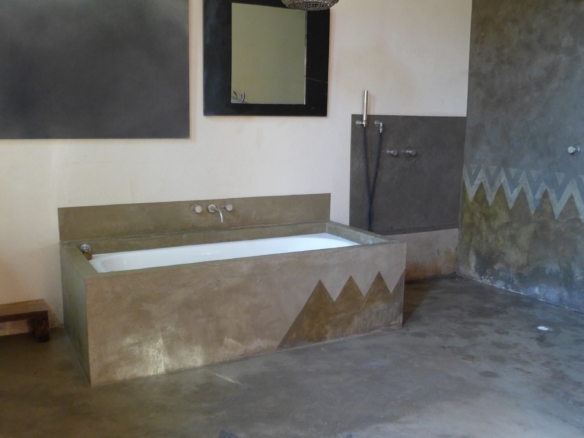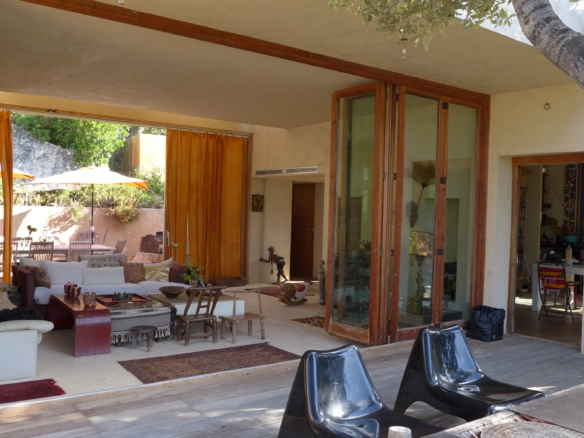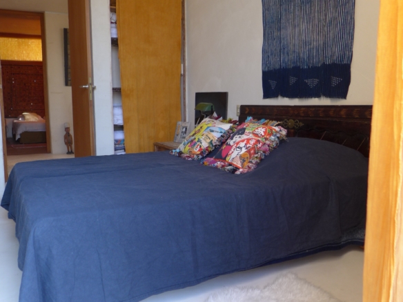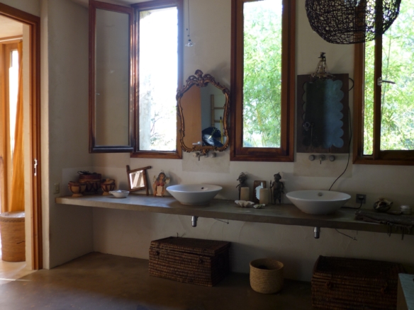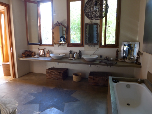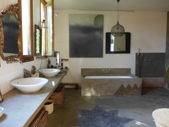 Each of the four peaceful and quiet bedrooms, three doubles and one with twin beds which can be put together, with unique and simple design open widely onto their own terrace entrance. The master bathroom has an earthy and industrial feel with a simple concrete design and light fixtures.