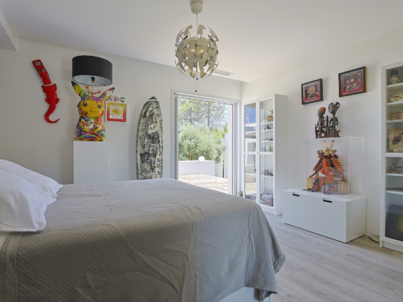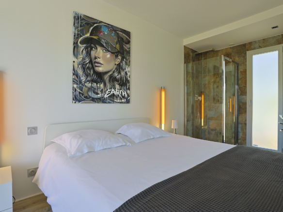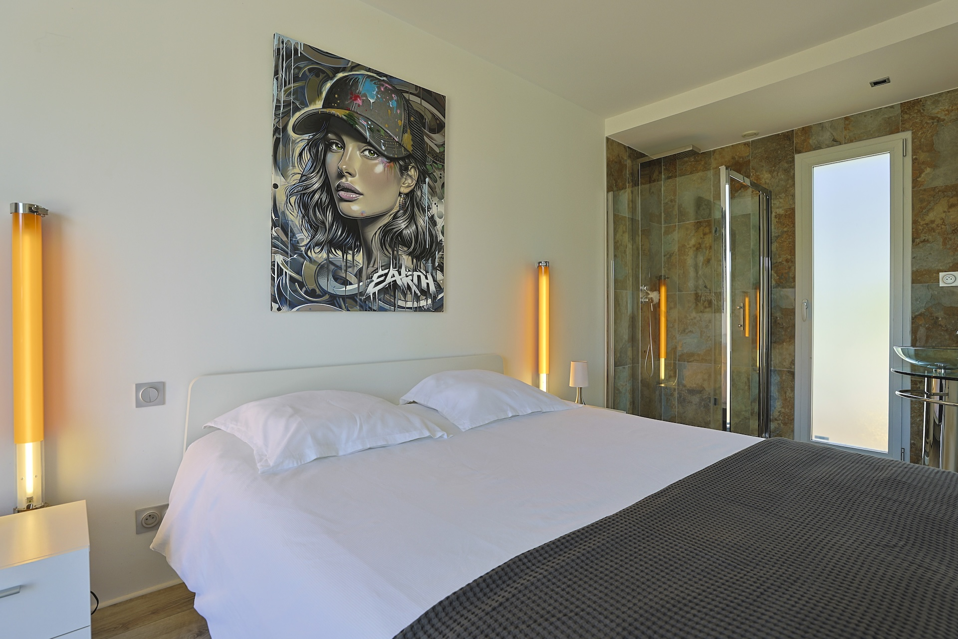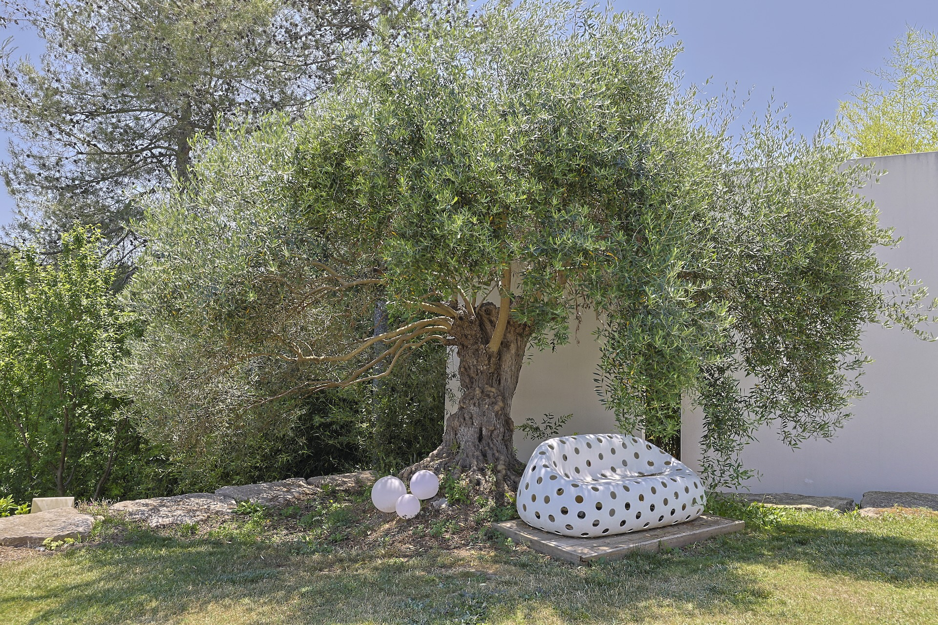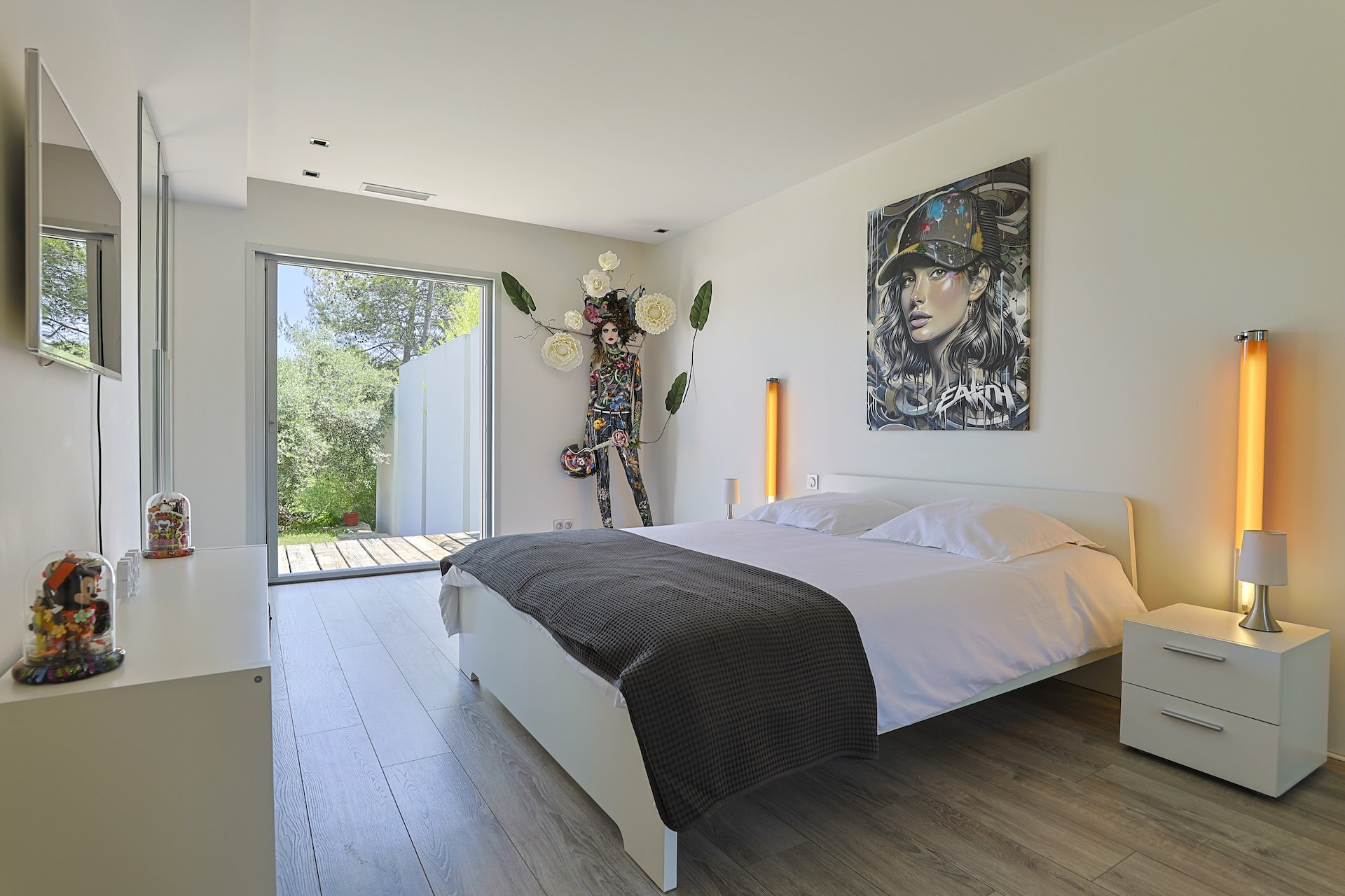 Villa Pop-corn belongs to a renowned international artist, and many of his original paintings and sculptures adorn the space, giving the home a unique creative energy. If preferred, artworks can be stored away during your stay. The artist’s studio, located in the basement, remains closed during rentals.