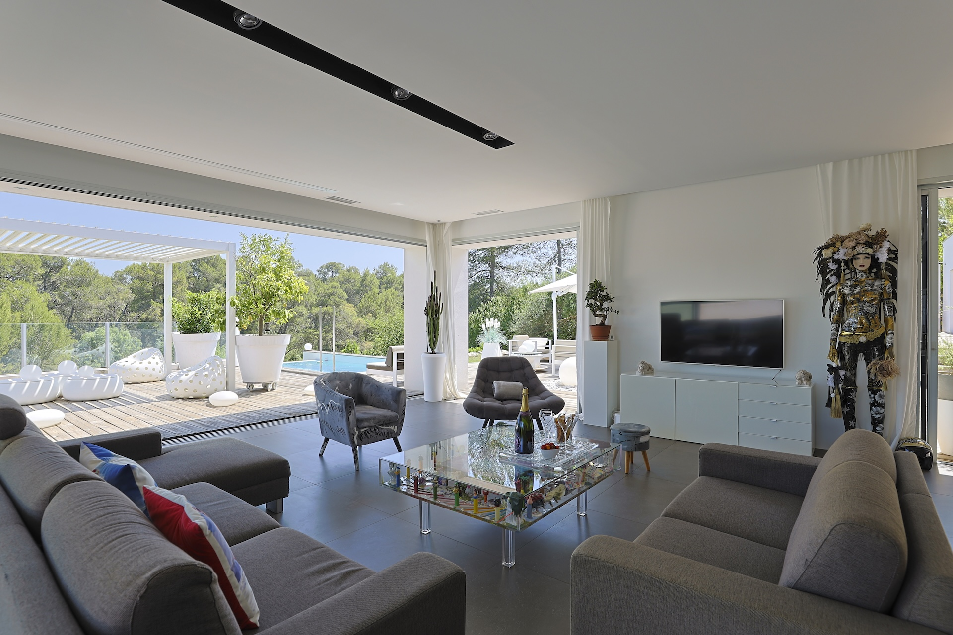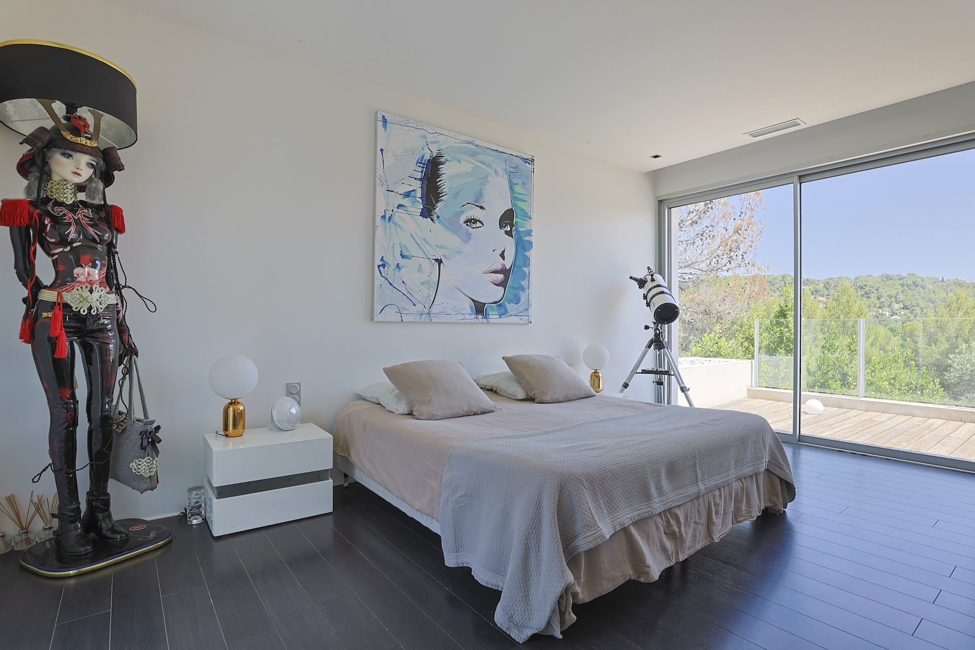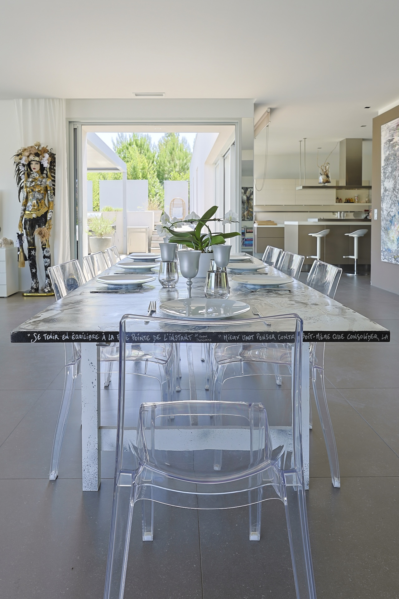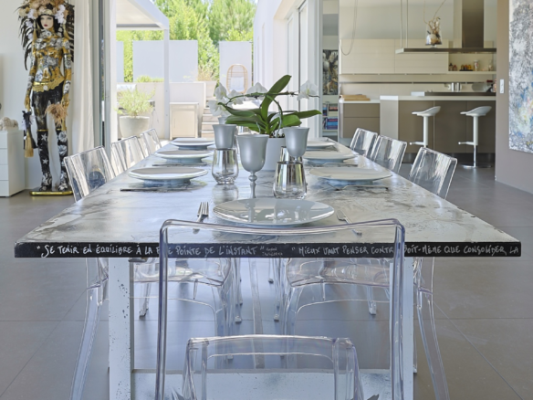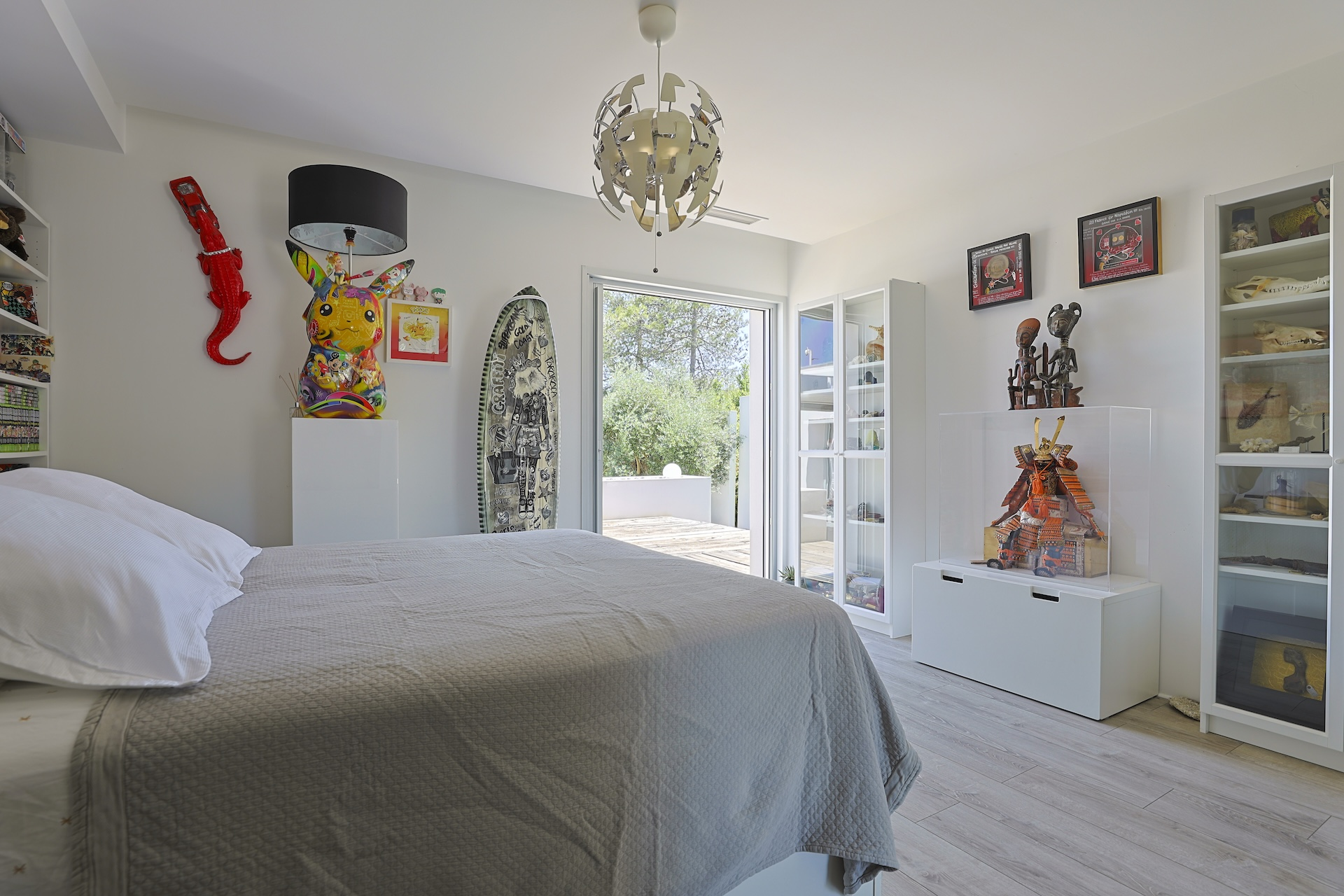 Villa Pop-corn belongs to a renowned international artist, and many of his original paintings and sculptures adorn the space, giving the home a unique creative energy. If preferred, artworks can be stored away during your stay. The artist’s studio, located in the basement, remains closed during rentals.