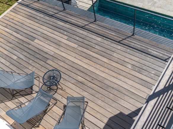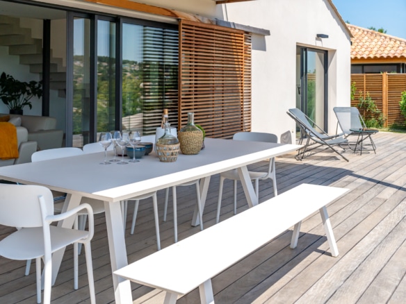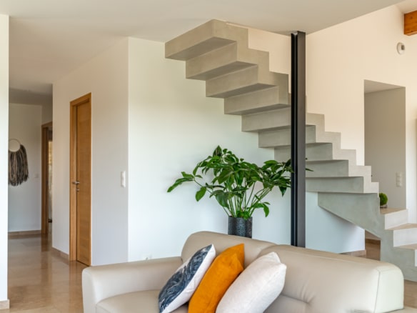 Set in a 680 m2 garden, this home offers an outdoor swimming area with a 6×3 metre swimming pool. Enclosed by a fence and shrubs to ensure your privacy, you can sunbathe in between dips on the stylish sunbeds surrounding the pool all whilst enjoying a fresh glass of lemonade. Just up the staircase near the pool, you have access to the wooden deck with outdoor sitting and a dining area. You are sure to enjoy sweeping views of the natural landscapes and breathtaking sunsets, which will make your barbecues and al fresco dinners absolutely unforgettable.